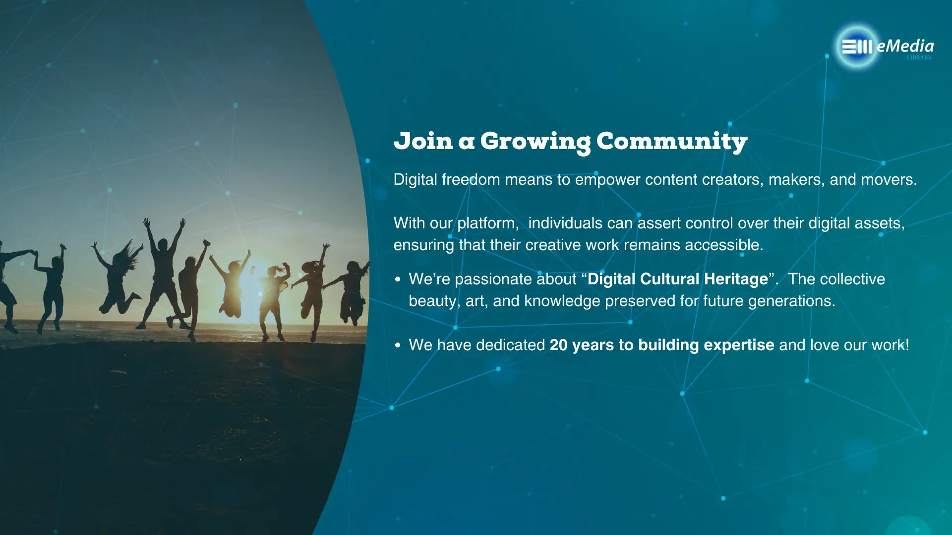 Get started completely FREE with a fully-featured eMedia Library installation.